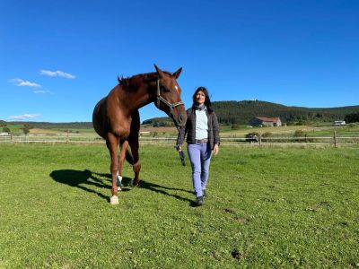 Marianne bei der Ausbildung der jungen Verkaufspferde unterstützt.