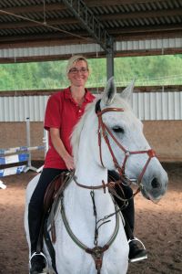 C Lizenz. Sie gibt regelmäßigen Dressur- und Springunterricht